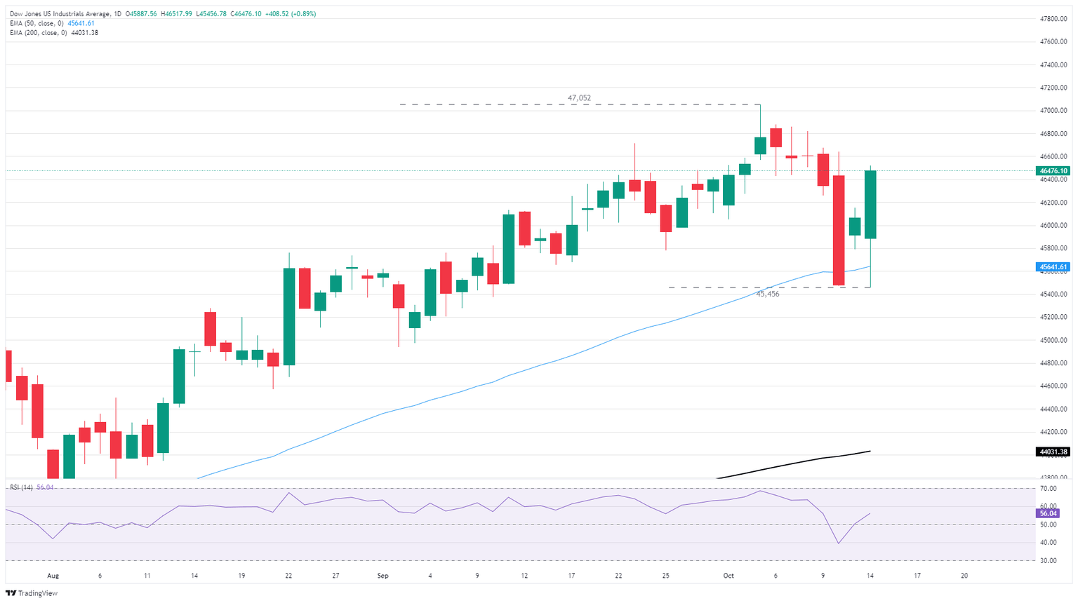 El Dow Jones cayó en la región de 45.450 durante la noche y las primeras horas de negociación antes de que los inversores lucharan de nuevo con un nuevo optimismo, empujando al índice de acciones principal de vuelta a la zona de 46.500 a medida que los mercados estadounidenses regresaban tras un largo fin de semana.