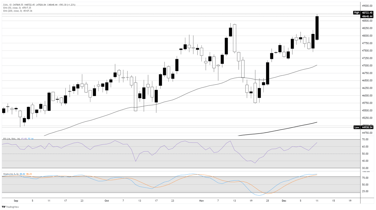 Mientras tanto, las tasas de interés más bajas apoyaron a los cíclicos y a las acciones de pequeña capitalización, empujando al Russell 2000 a un récord intradía junto al Dow. Los inversores consideraron la posibilidad de un 'rally de Santa Claus' a fin de año, incluso cuando algunos estrategas advirtieron sobre posibles vientos en contra en 2025-2026, incluyendo fatiga del sector de IA, cambios políticos y un cambio en el liderazgo de la Fed.