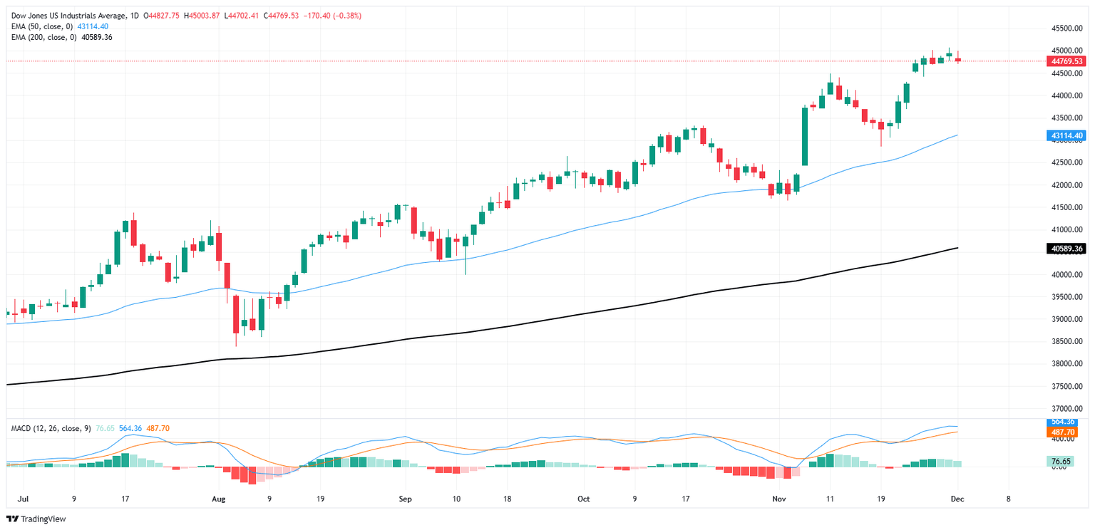 Se debe esperar algún tipo de retroceso en los gráficos después de que el Dow Jones registrara su mejor desempeño mensual de 2024 en noviembre. El DJIA subió más del 7,5% intermensual, llevando al Dow a una ganancia de casi el 20% en lo que va del año.