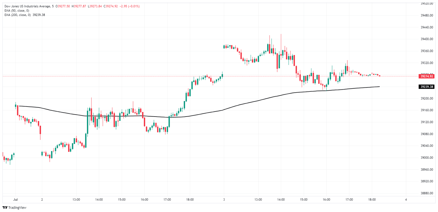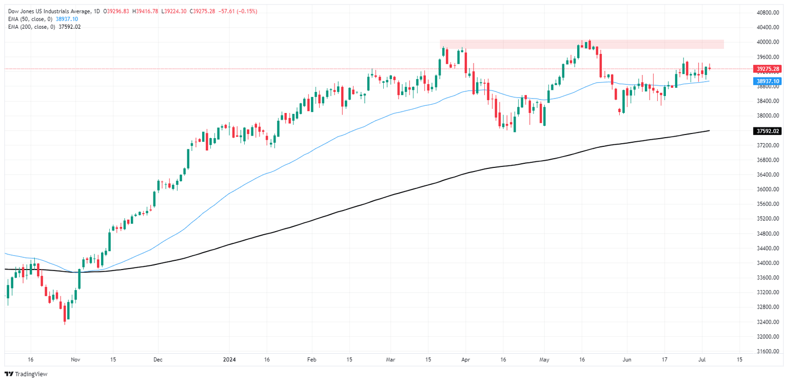 El Promedio Industrial Dow Jones continúa girando en un terreno medio familiar, ciclando en un rango de consolidación aproximado justo por encima de 39.000,00. El índice se recuperó brevemente a un máximo a corto plazo por encima de 39.500,00 a principios de la semana pasada, pero los postores se han quedado sin gas.