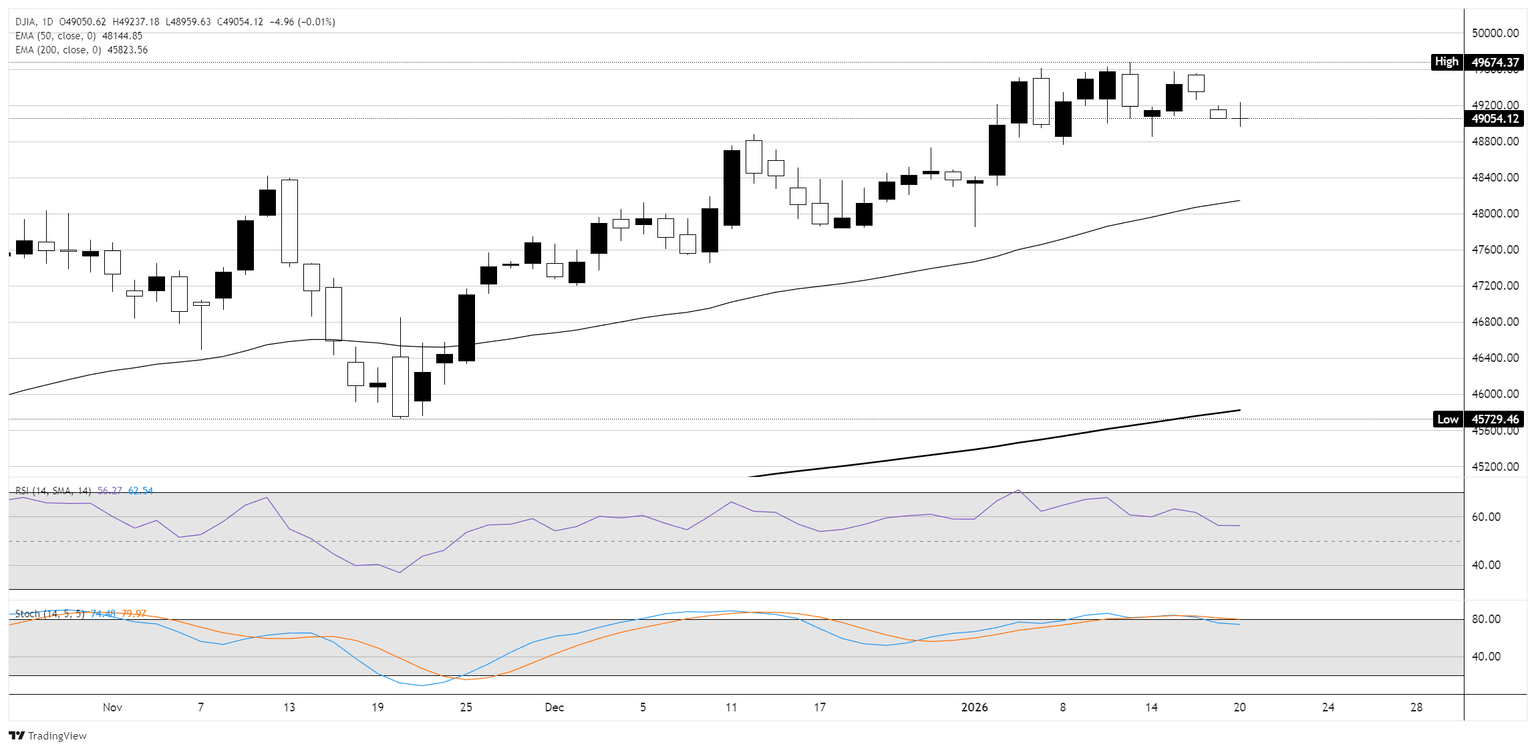 Las acciones estadounidenses se vendieron bruscamente el martes a medida que el riesgo geopolítico aumentó después de que el presidente Donald Trump intensificara la retórica en torno a la adquisición de Groenlandia, incluidas nuevas amenazas arancelarias contra aliados cercanos de EE.UU. Los mercados reaccionaron rápidamente a la perspectiva de un renovado conflicto comercial, con los inversores reduciendo la exposición a activos estadounidenses en medio de preocupaciones de que los aranceles se están utilizando como una herramienta política en lugar de una puramente económica. Los rendimientos del Tesoro saltaron, el Dólar estadounidense (USD) se debilitó alrededor del 1% y la volatilidad se disparó a medida que el sentimiento de riesgo se deterioró.