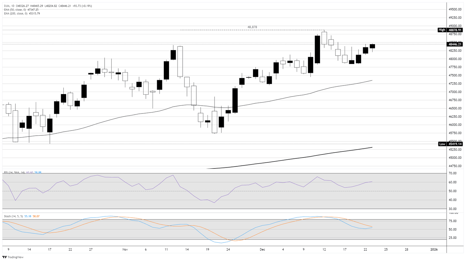 Con los mercados de EE.UU. listos para cerrar temprano en Nochebuena y permanecer cerrados en Navidad, los inversores entran en el período festivo con acciones cerca de niveles récord, apoyados por el optimismo en torno al liderazgo tecnológico, una economía resiliente y la perspectiva de una política monetaria más laxa en el futuro.