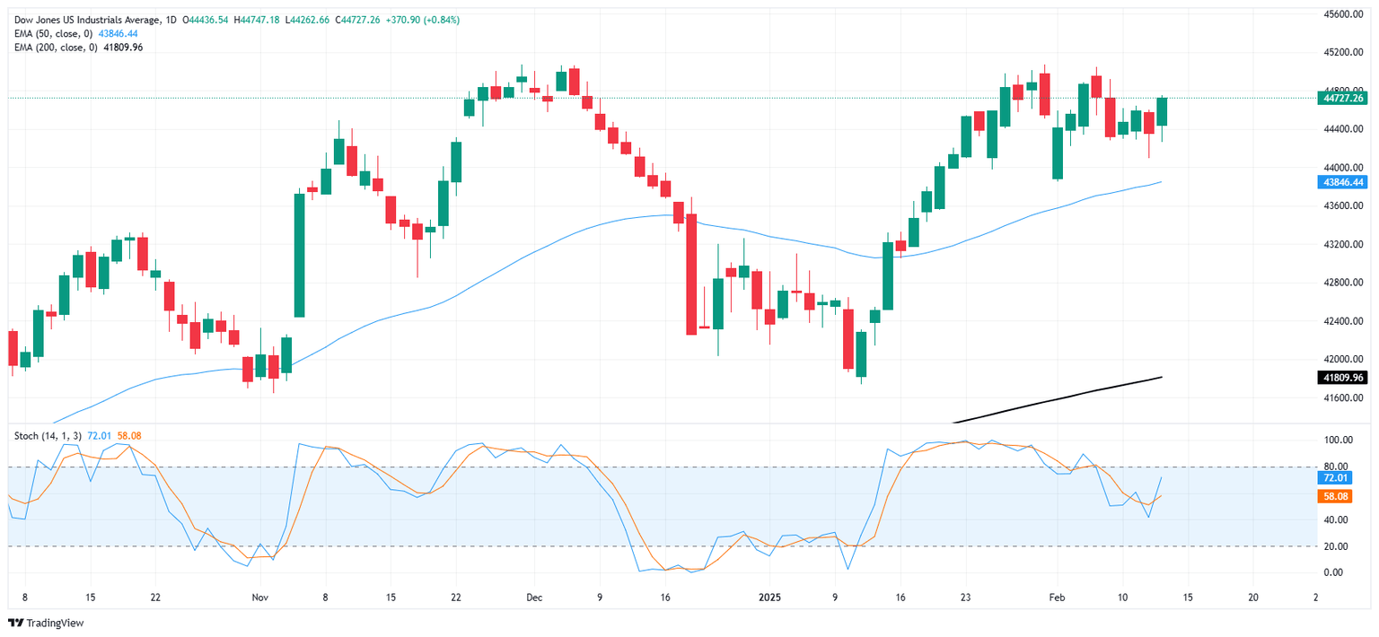 44,500 se está convirtiendo en territorio familiar para el Dow Jones. El índice de mega capitalización ha estado girando dentro de un rango agitado entre 45,000 y 44,000 desde mediados de enero, con los postores incapaces de encontrar un punto de apoyo en nuevos máximos históricos, pero la presión a la baja aún no logra derribar al DJIA.
