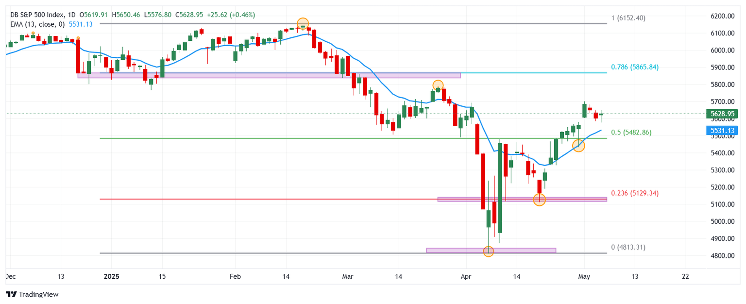 El S&P 500 estableció un mínimo de 5.576, he encontrado compradores agresivos que impulsaron el índice a máximos de dos días en 5.650. Actualmente, el S&P 500 cotiza sobre 5.628, ganando un 0.46% el día de hoy.