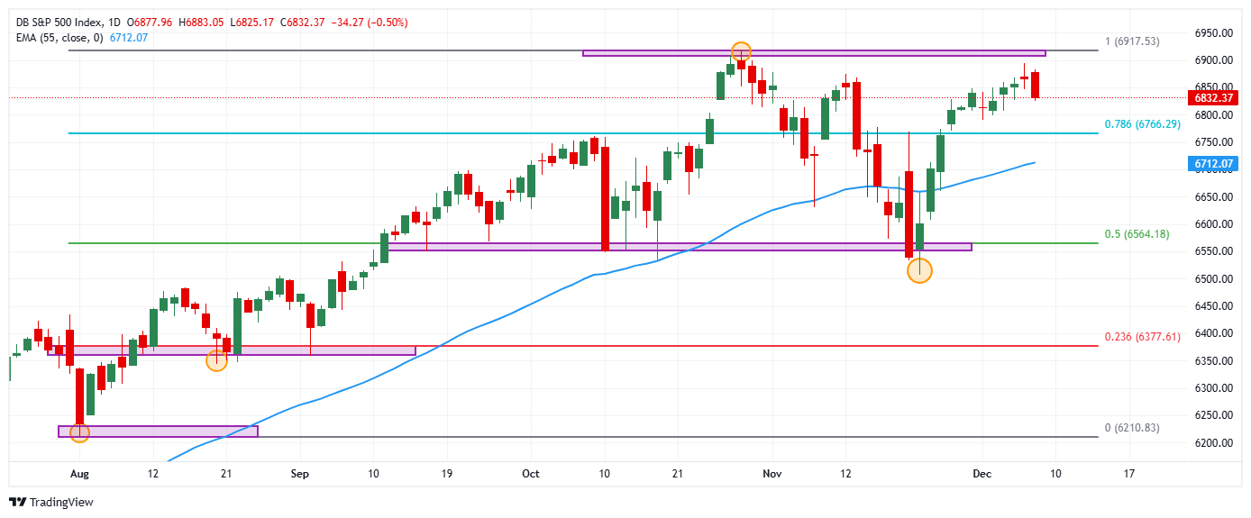 - El índice bursátil S&P 500 pierde un 0.49% el día de hoy, alcanzando mínimos del 3 de diciembre en 6825.