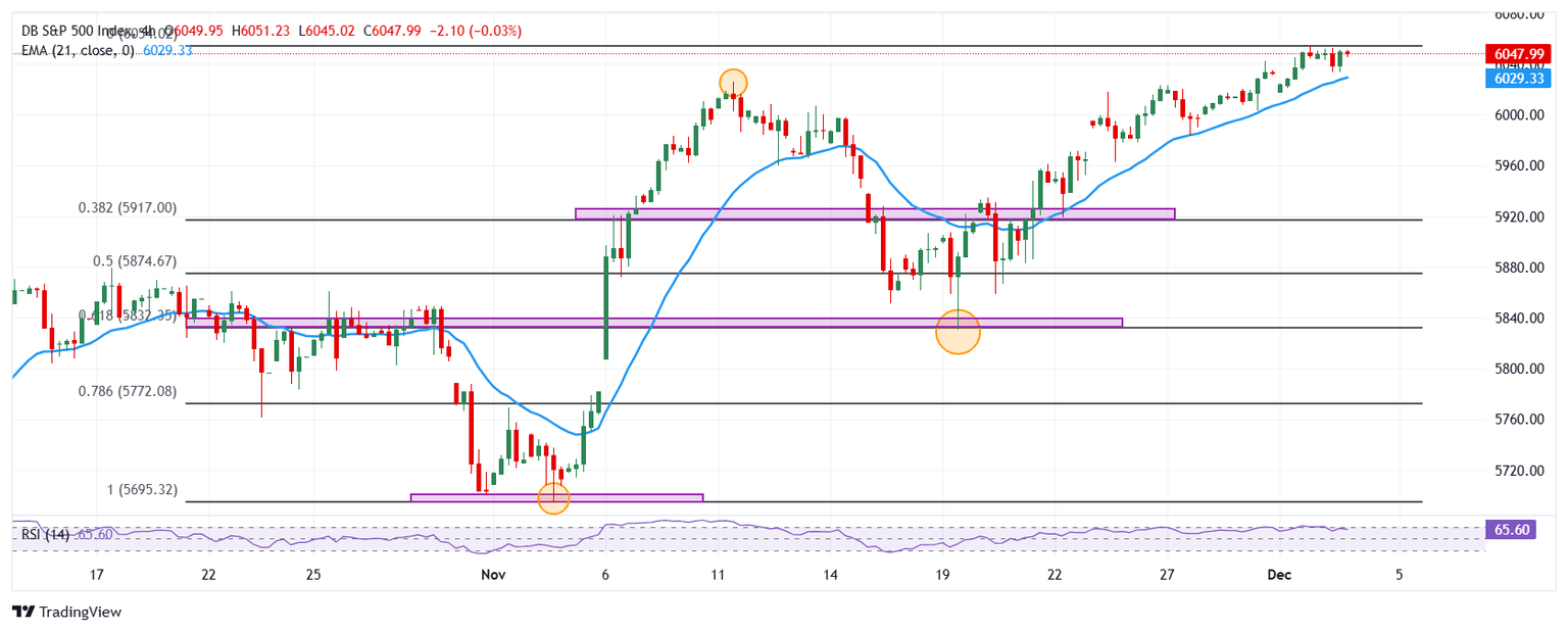 El S&P 500 registro un mínimo del día el 6033, encontrando compradores que llevaron el índice a un máximo del día en 6052. Actualmente, el S&P 500 cotiza sobre 6.051, subiendo un 0.07% hilando su cuarta sesión consecutiva al alza.