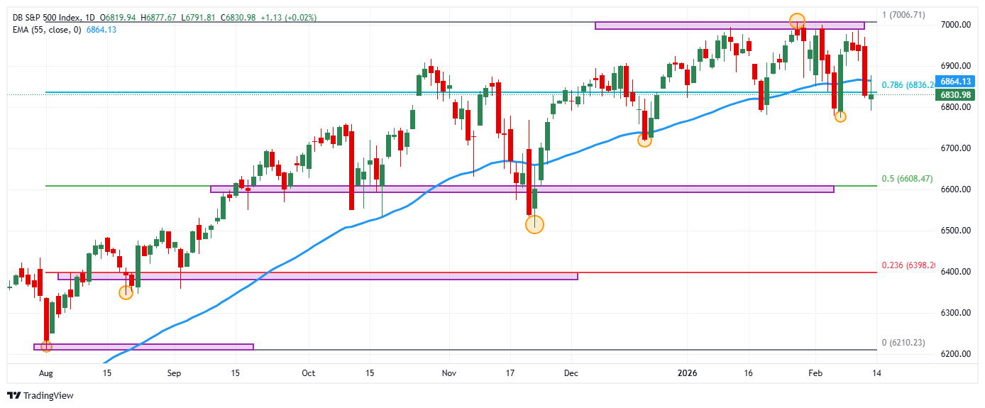 El S&P 500 estableció un soporte en 6.717, mínimo del 17 de diciembre. La siguiente área de soporte clave se encuentra en 6.507, punto pivote del 21 de noviembre de 2025. Al norte, la resistencia más cercana está en 7.006, dada por el máximo histórico alcanzado el 28 de enero.
