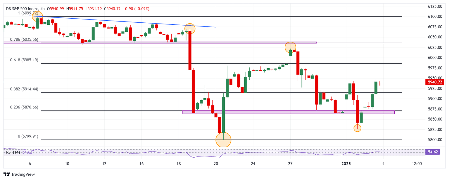 El S&P 500 estableció un mínimo del día en 5.874, encontrando compradores que llevaron el índice a máximos del 30 de diciembre en 5.946. Al momento de escribir, el S&P 500 cotiza sobre 5.940, subiendo un 1.28% diario.