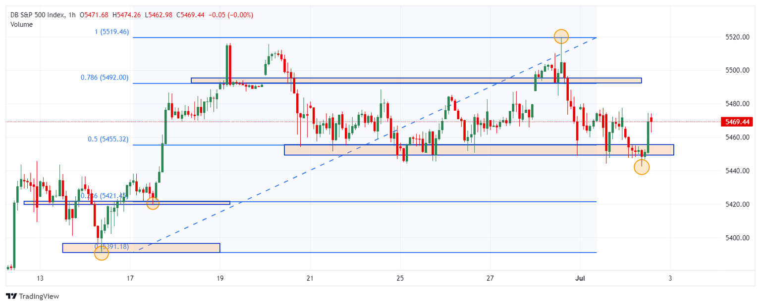 - El S&P se ha consolidado en un rango entre 5.519 y 5.442 en las últimas sesiones.