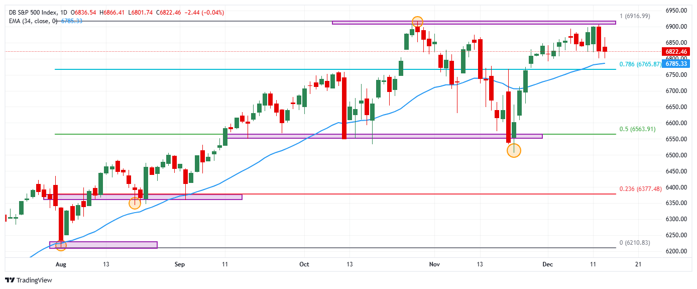 En este sentido, el S&P 500 pierde 5 puntos, llegando a un mínimo diario en 6.801.