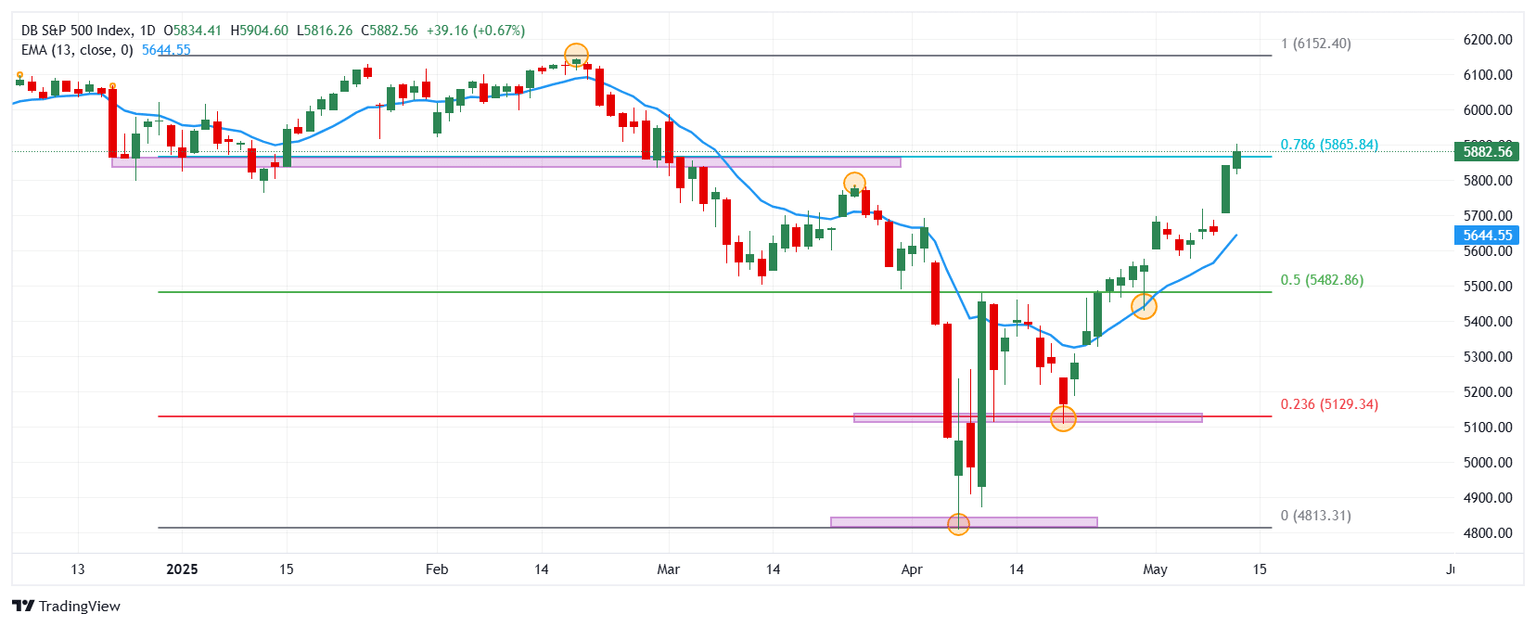 El S&P 500 estableció un mínimo del día en 5.816, encontrando compradores agresivos que impulsaron el índice a máximos del 3 de marzo en 5.904. Actualmente, el S&P 500 cotiza en 5.882, subiendo un 0.67% en la jornada del martes.