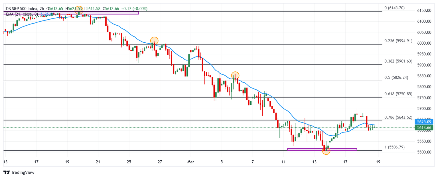 El S&P 500 estableció un máximo diario en 5.678, donde encontró vendedores agresivos que llevaron el índice a un mínimo del día en 5.596. Al momento de escribir, el S&P 500 cotiza sobre 5.613 perdiendo un 1.08% el día de hoy.