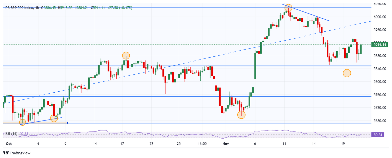 El S&P 500 estableció un mínimo del día en 5.858, encontrando compradores que llevaron el índice a máximos de tres días en 5.934. Al momento de escribir, el S&P 500 opera en 5.914, perdiendo un 0.01% en el día.