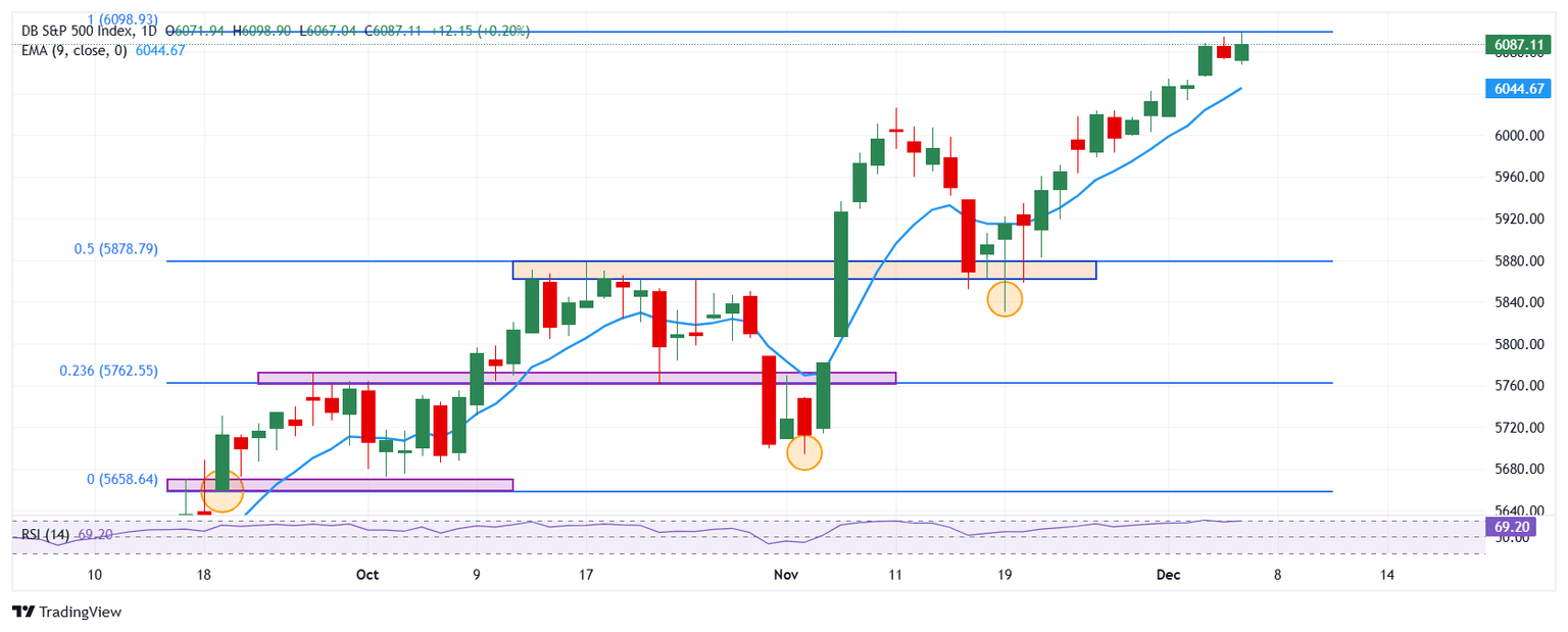 El S&P 500 retoma la perspectiva alcista marcando nuevos máximos históricos en 6.098 mientras los inversores se mantienen atentos a las declaraciones de Beth Hammack y Mary Daly, miembros de la Reserva Federal.