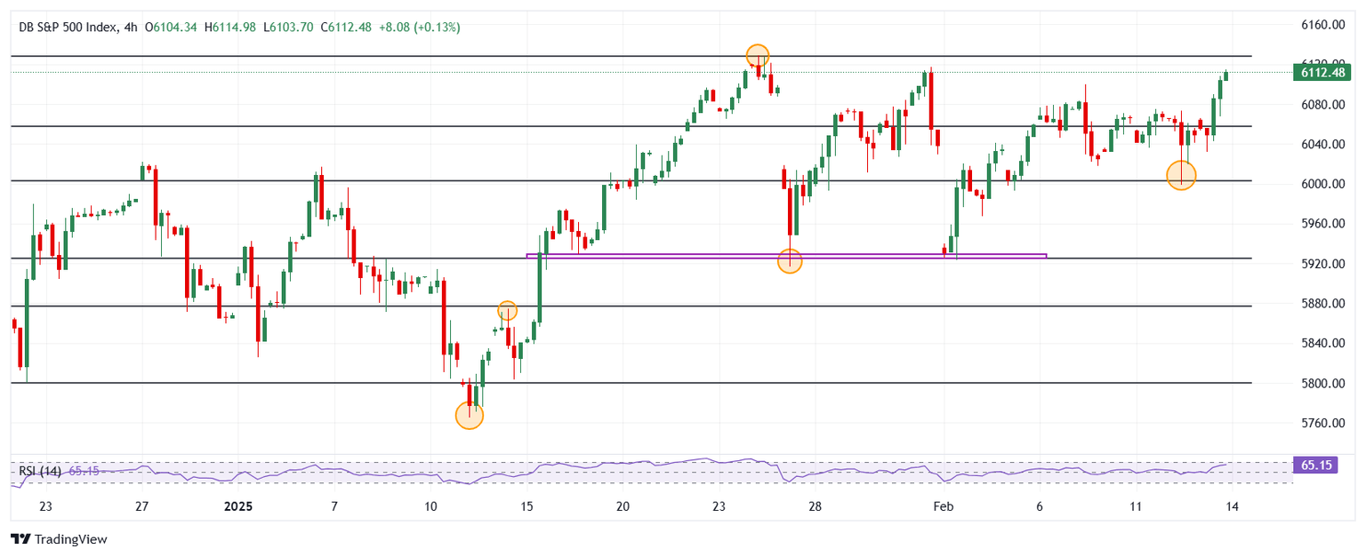 El S&P 500 retoma la perspectiva alcista apuntando hacia el máximo histórico alcanzado el 24 de enero en 6.129.