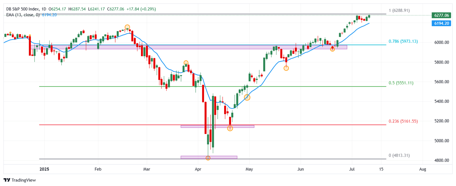 El S&P 500 avanza 17 puntos diario, operando actualmente sobre 6.227.