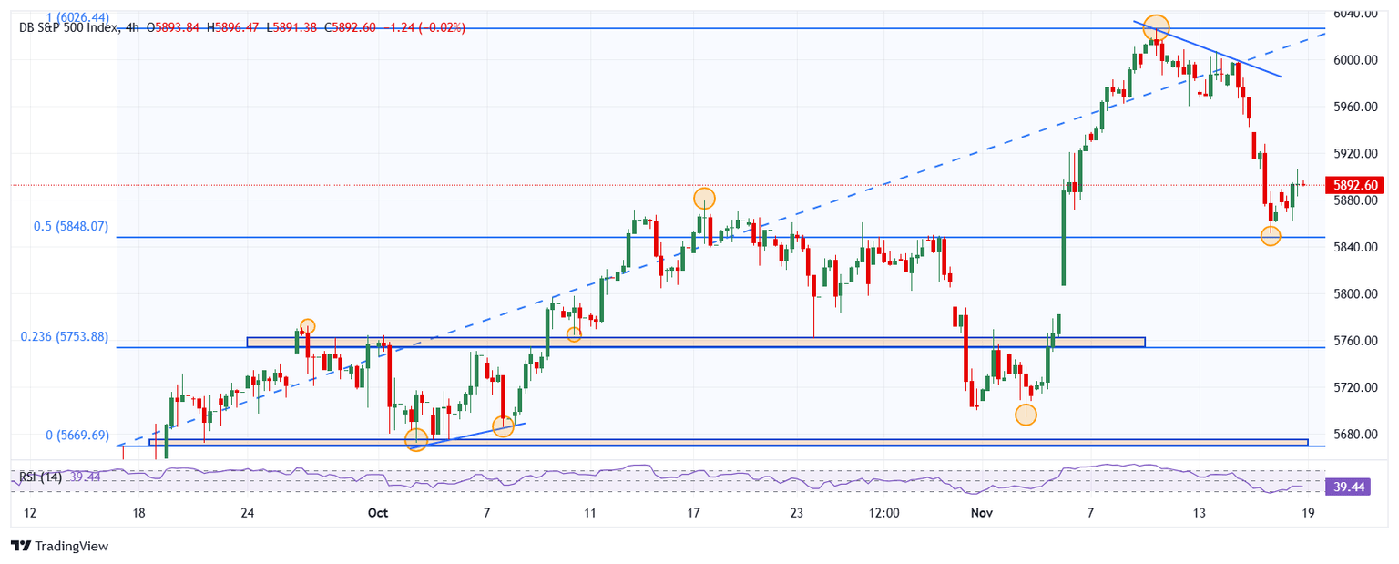 El S&P 500 marcó un mínimo diario en 5.861, encontrando compradores que llevaron el precio de la acción a un máximo del día en 5.906. Al momento de escribir, el S&P 500 opera en 5.892 ganando un 0.41% diario.