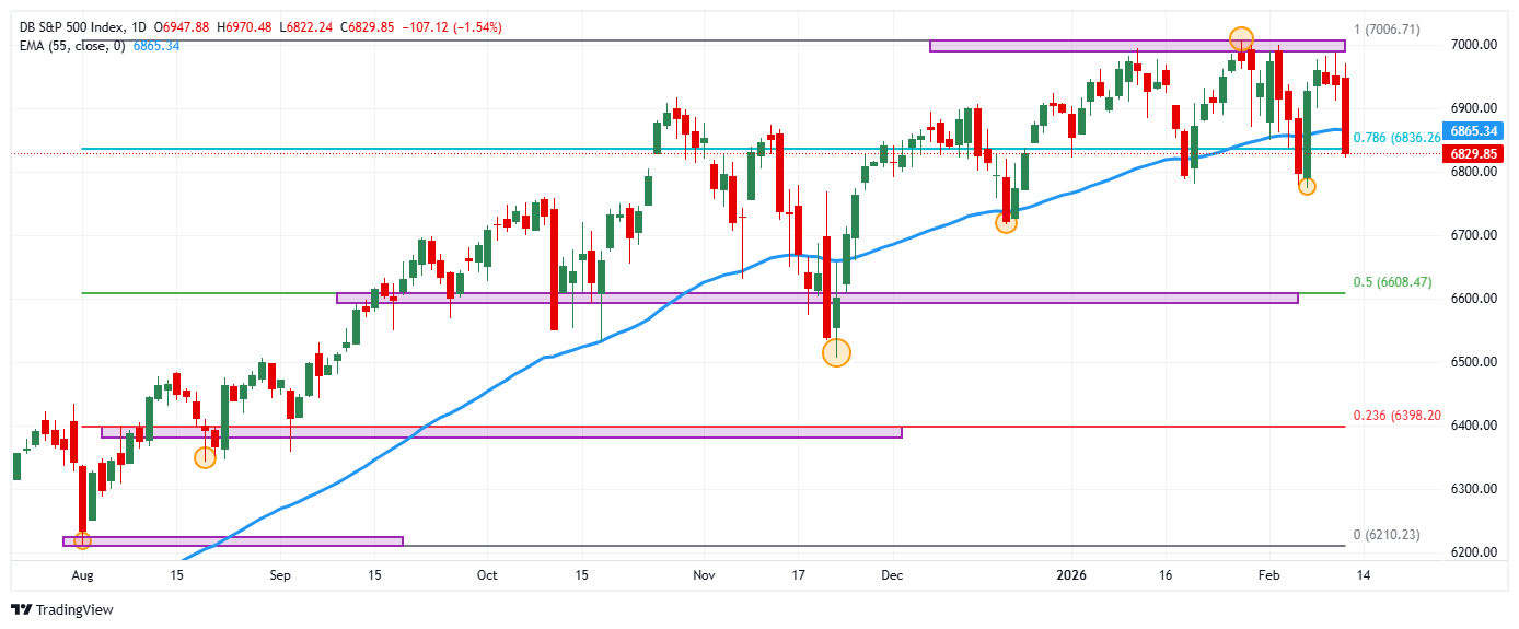 El S&P 500 reaccionó a la baja desde un máximo del día en 6.970, donde encontró vendedores agresivos que arrastraron el índice a mínimos del 6 de febrero en 6.822. Actualmente, el S&P 500 se desliza un 1.48% en la jornada del jueves, operando sobre 6.833.