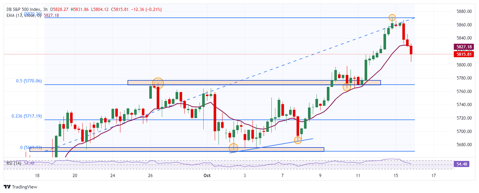 El S&P 500 alcanzó un máximo de la sesión en el 5867, donde atrajo vendedores agresivos que llevaron el índice a mínimos de dos días en 5.769. Actualmente, el S&P 500 cotiza en 5.815, perdiendo un 0.79% en el día.