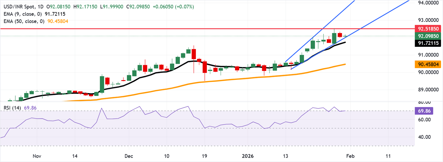 El USD/INR se mantiene alrededor de 92.00 en medio de un persistente impulso alcista