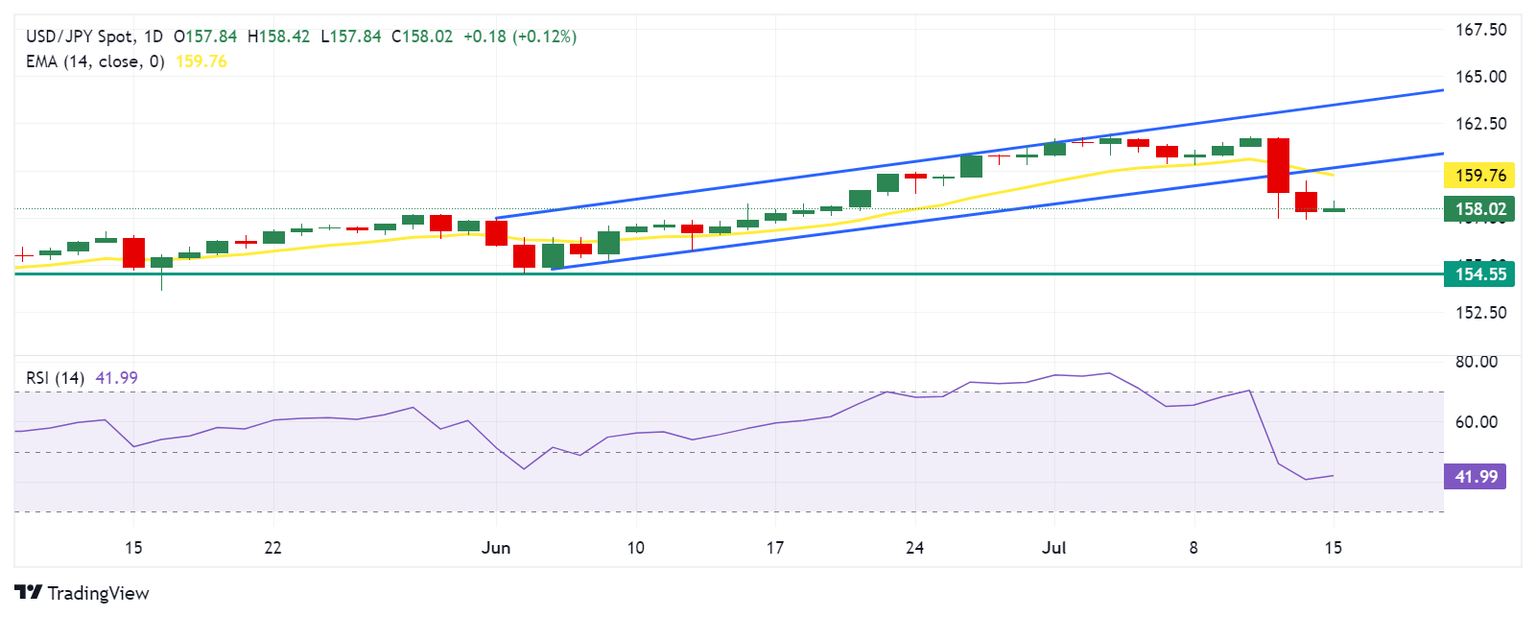 Análisis Técnico: El USD/JPY se mantiene alrededor de 158.00