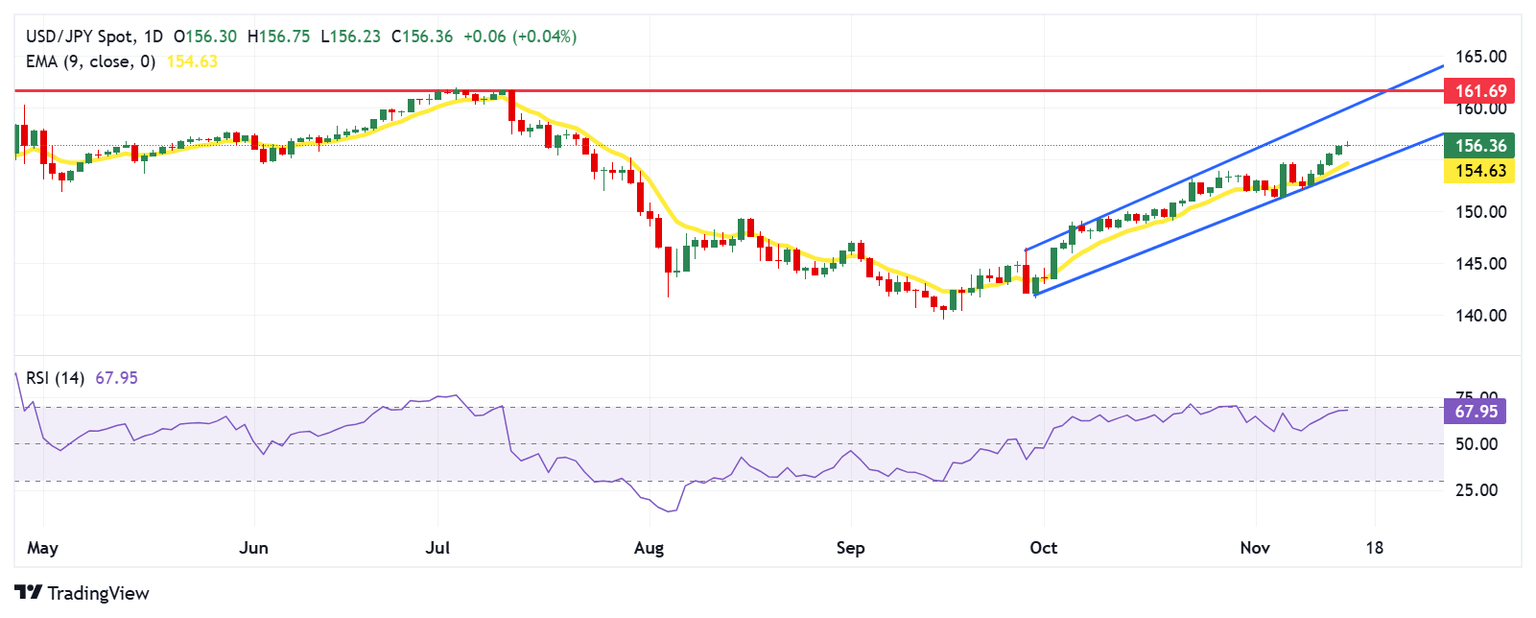 Análisis Técnico: El USD/JPY sube cerca de 156.50 mientras prevalece el sesgo alcista