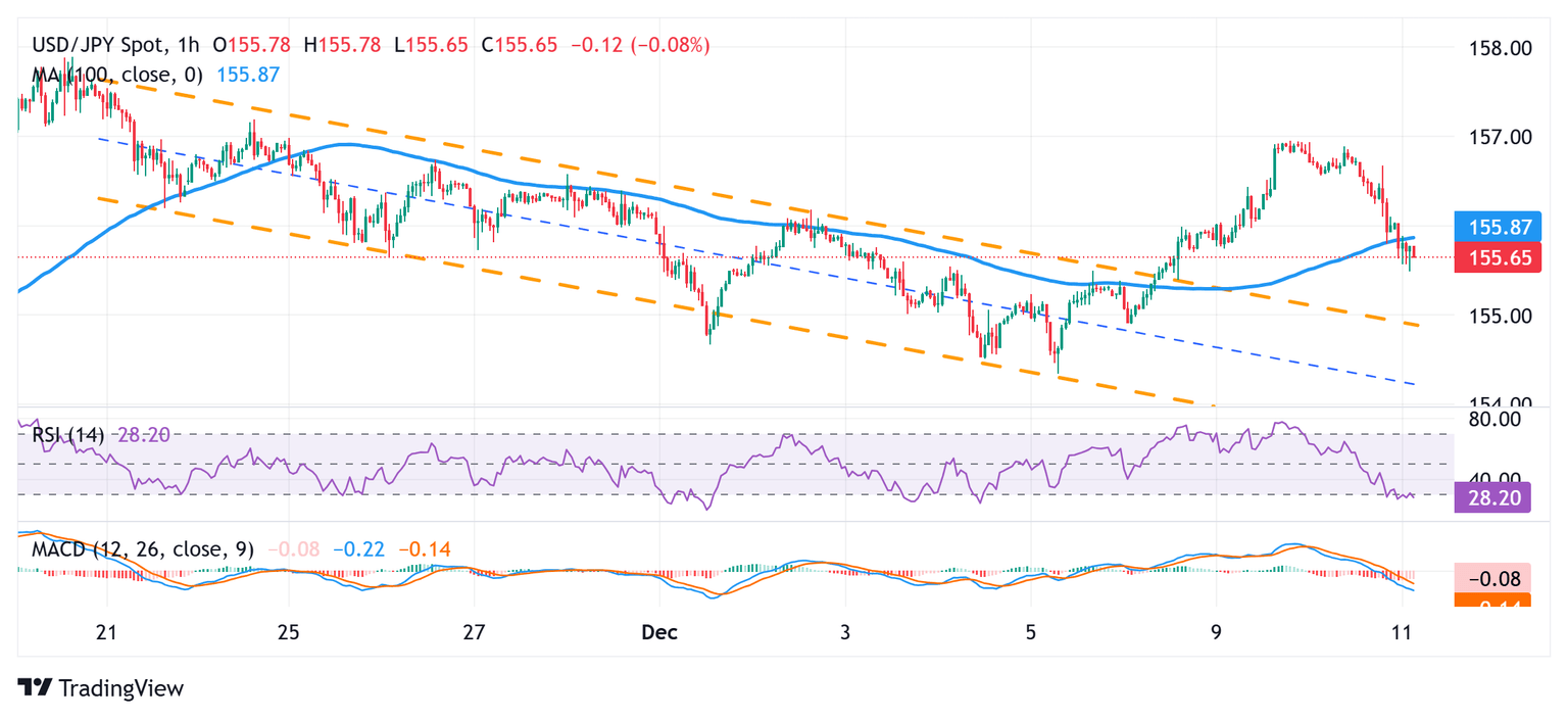 El USD/JPY podría encontrar soporte cerca del punto de ruptura del canal descendente, alrededor de 155.35