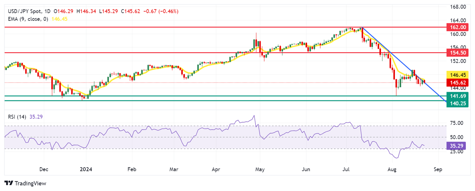 Análisis Técnico: El USD/JPY cae hacia 145,50 alrededor de la línea de tendencia bajista