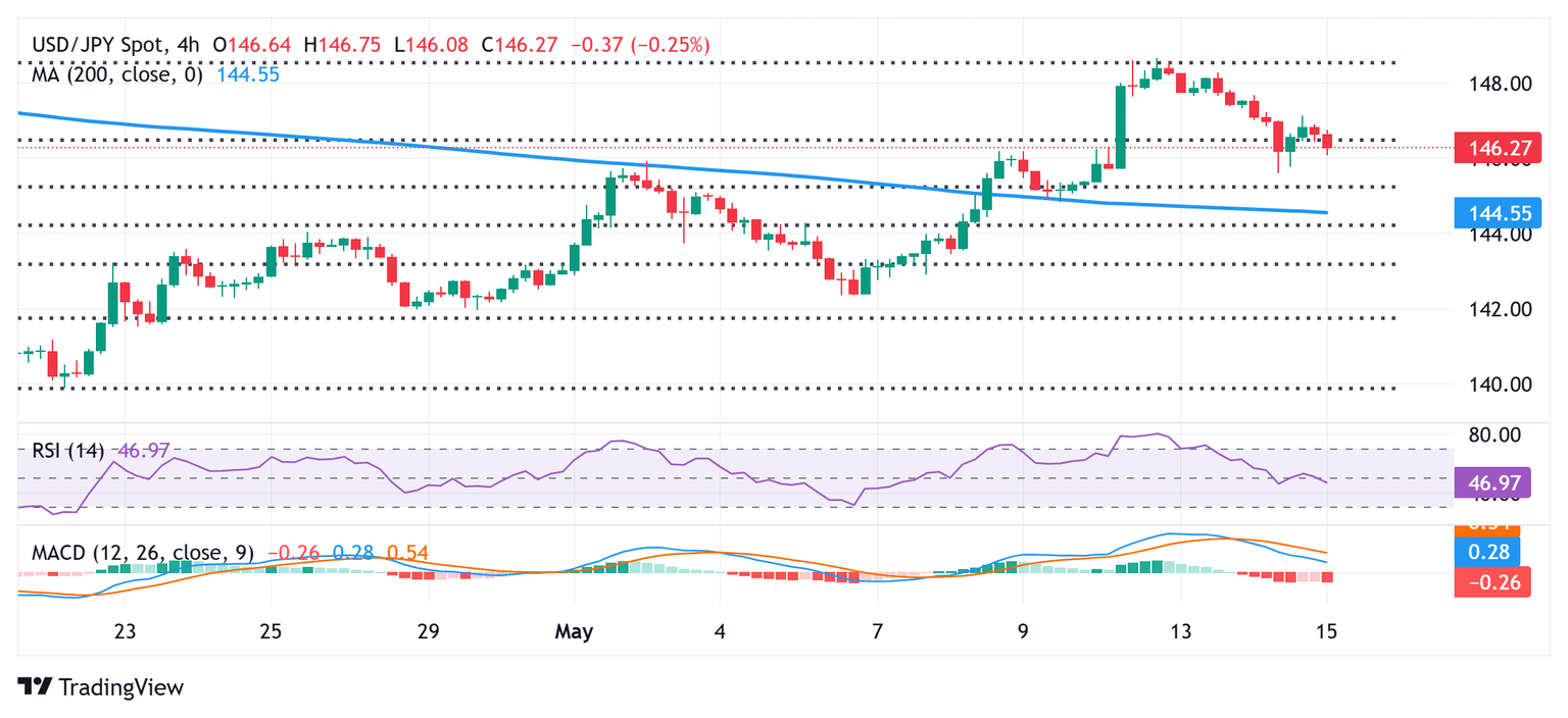 Desde una perspectiva técnica, el par USD/JPY lucha por capitalizar el rebote nocturno más allá del nivel de retroceso del 23.6% de Fibonacci de la recuperación desde el mínimo del año establecido en abril. Además, los osciladores negativos en los gráficos horarios apoyan las perspectivas de una nueva caída intradía por debajo de la marca de 146.00, hacia una nueva prueba de la zona de 145.60 o el mínimo semanal establecido el miércoles. Esto es seguido por el nivel del 38.2% de Fibonacci, alrededor de la región de 145.35-145.30, por debajo de la cual los precios al contado podrían caer hasta la marca psicológica de 145.00 en ruta hacia la zona de 144.70-144.65. Este último representa el punto de ruptura de resistencia de la media móvil simple (SMA) de 200 períodos en el gráfico de 4 horas y debería actuar como un punto clave. Una ruptura convincente por debajo sugerirá que la reciente recuperación desde el mínimo del año ha perdido impulso y allanará el camino para pérdidas más profundas.