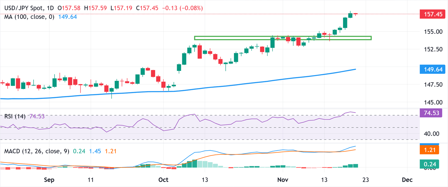 USD/JPY necesita consolidarse antes del próximo movimiento al alza en medio de un RSI diario sobrecomprado