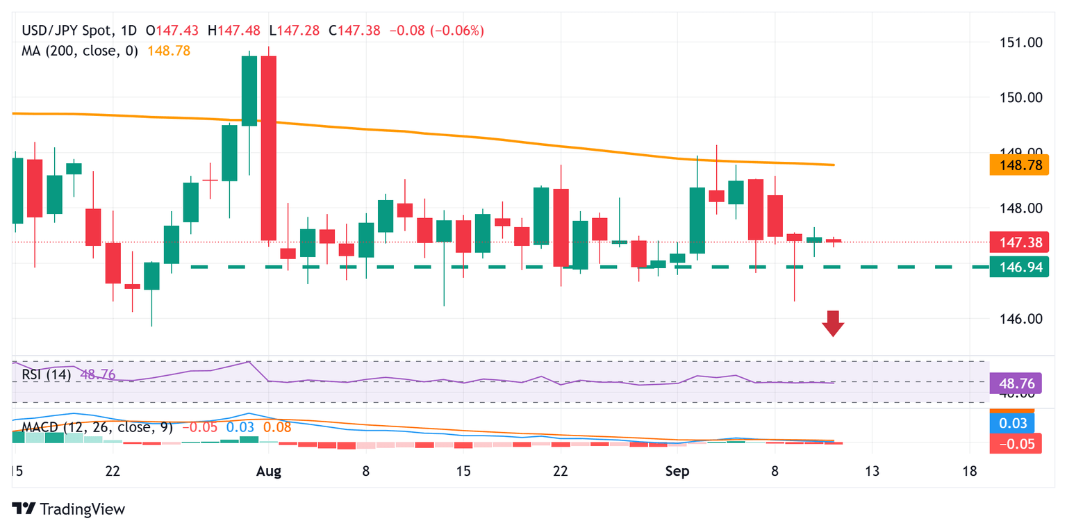 La incapacidad del par USD/JPY para construir sobre el rebote moderado de esta semana desde la vecindad del mínimo mensual de agosto y los osciladores negativos en el gráfico diario favorecen a los operadores bajistas. Algunas ventas de continuación y aceptación por debajo de la marca de 147.00 reafirmarán la perspectiva, lo que, a su vez, debería allanar el camino para una caída hacia la re-prueba de la zona de soporte de 146.30-146.20. Algunas ventas de continuación, que lleven a una ruptura posterior a través de la marca de 146.00, podrían arrastrar los precios al contado hacia el soporte intermedio de 145.35 en ruta hacia la marca psicológica de 145.00.