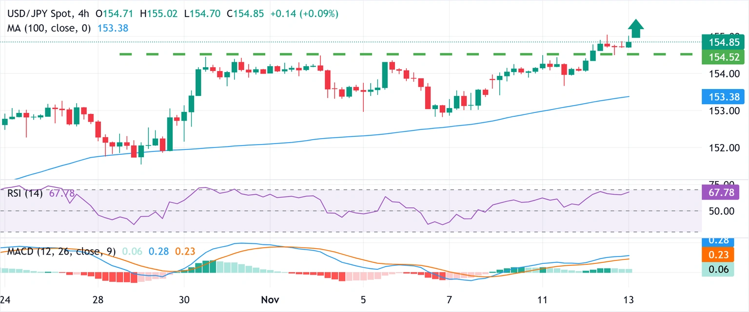 Los alcistas del USD/JPY tienen la ventaja mientras estén por encima del punto de resistencia horizontal de 154.45-154.50