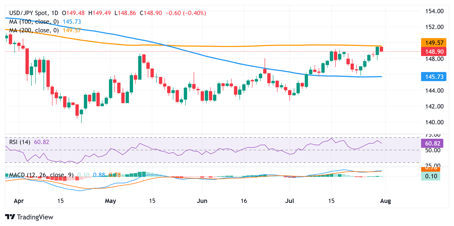 Desde una perspectiva técnica, el par USD/JPY detiene el movimiento alcista posterior a la Fed cerca de la media móvil simple (SMA) de 200 días. La mencionada barrera está situada cerca de la región de 149.55 y ahora debería actuar como un obstáculo inmediato. Dado que los osciladores en el gráfico diario han estado ganando tracción positiva, una fortaleza sostenida más allá debería allanar el camino para un movimiento hacia recuperar la marca psicológica de 150.00. El impulso podría extenderse aún más hacia el siguiente obstáculo relevante cerca de la zona de 150.40 antes de que los precios al contado finalmente suban a la cifra redonda de 151.00.