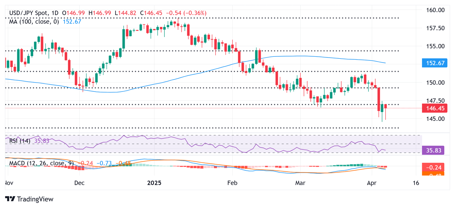 Mientras tanto, los signos de una inflación creciente en Japón mantienen abierta la puerta a futuras subidas de tasas de interés por parte del Banco de Japón (BoJ) en 2025, lo que resulta ser otro factor que apoya al JPY. El Dólar estadounidense (USD), por otro lado, se enfrenta a un nuevo suministro en medio de las expectativas de que una desaceleración económica impulsada por aranceles en EE.UU. podría obligar a la Reserva Federal (Fed) a reanudar pronto su ciclo de recortes de tasas. Esto contribuye aún más a la caída del par USD/JPY más cerca de la marca psicológica de 145.00.
