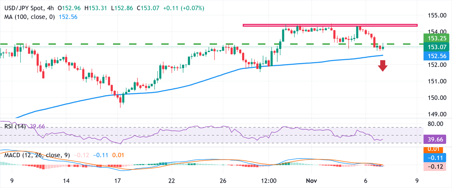 El USD/JPY podría extender la caída de retroceso de esta semana desde la resistencia clave de 154.45