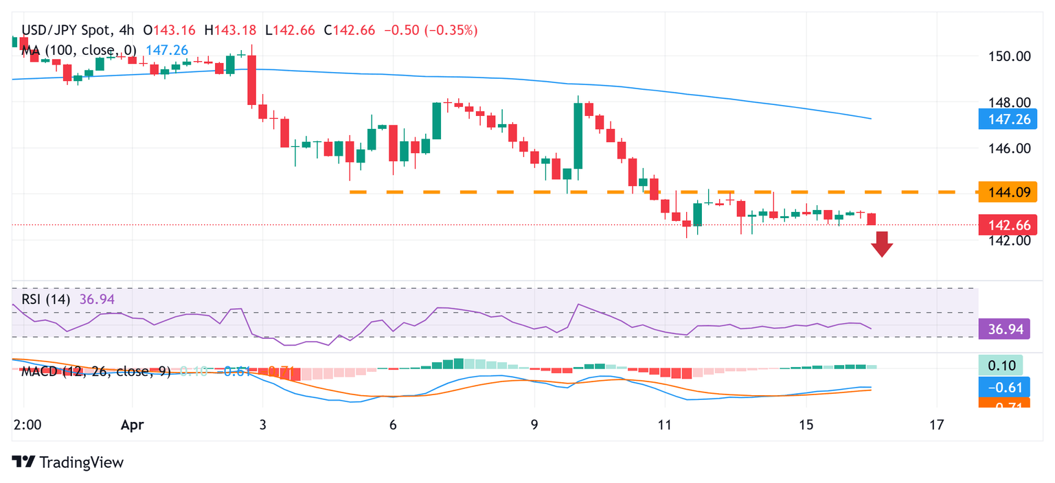 Desde una perspectiva técnica, la incapacidad del par USD/JPY para atraer compradores significativos sugiere que una tendencia bajista de varios meses aún está lejos de terminar. Además, los osciladores en el gráfico diario se mantienen profundamente en territorio negativo, lo que sugiere aún más que el camino de menor resistencia sigue siendo a la baja. Mientras tanto, cualquier caída adicional probablemente encontrará algo de soporte cerca de la región de 142.25-142.20, o el mínimo semanal, antes del nivel de 142.00, o el mínimo de varios meses alcanzado el viernes pasado. Una ruptura convincente por debajo de este último reafirmará el sesgo negativo y abrirá el camino para un movimiento de depreciación adicional a corto plazo para el par.