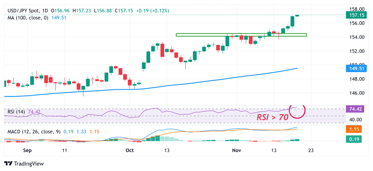 Los alcistas del USD/JPY podrían hacer una pausa para tomar aliento ya que el RSI diario muestra condiciones ligeramente sobrecompradas