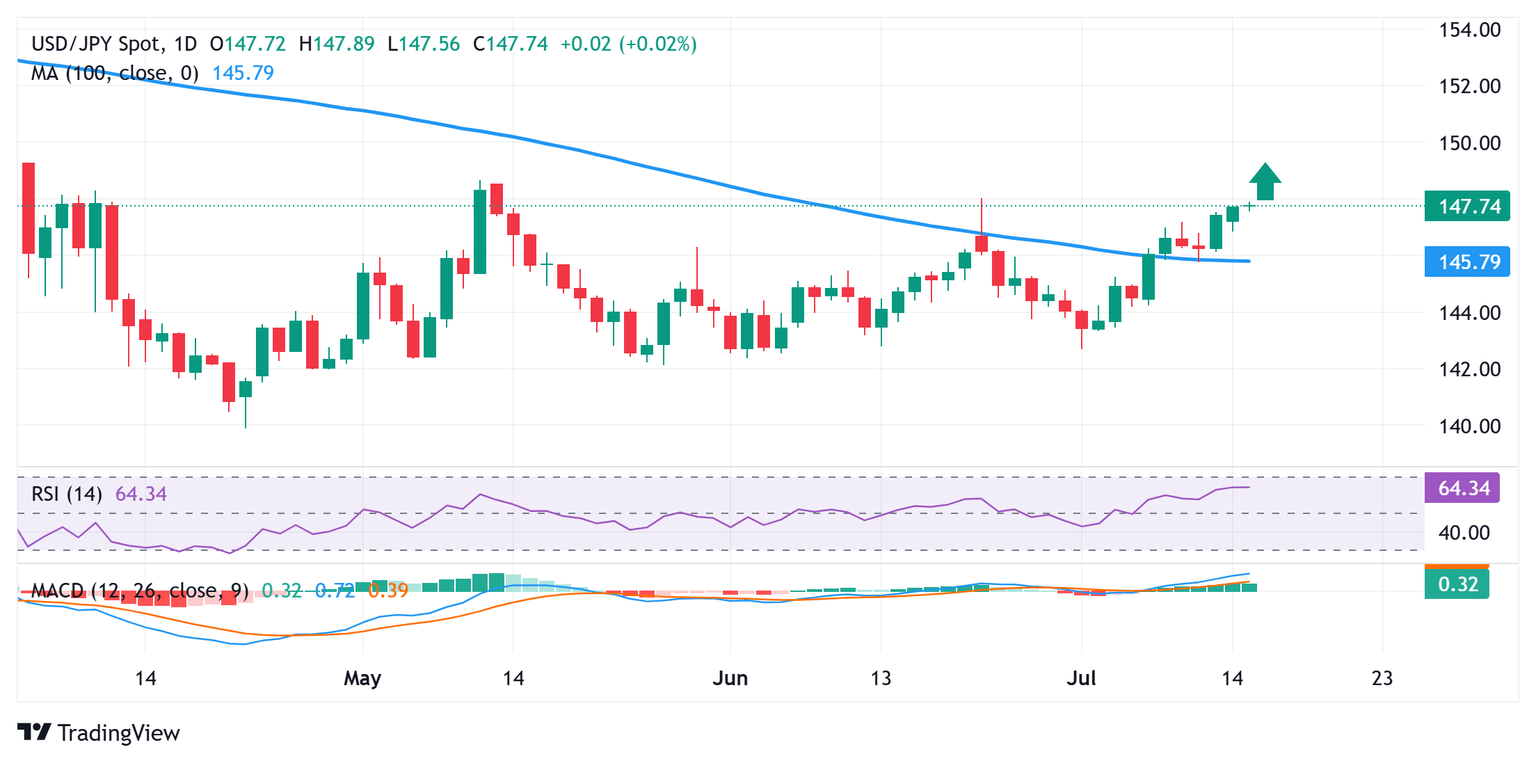 El USD/JPY espera una fortaleza sostenida y aceptación por encima de 148.00 antes del siguiente movimiento al alza