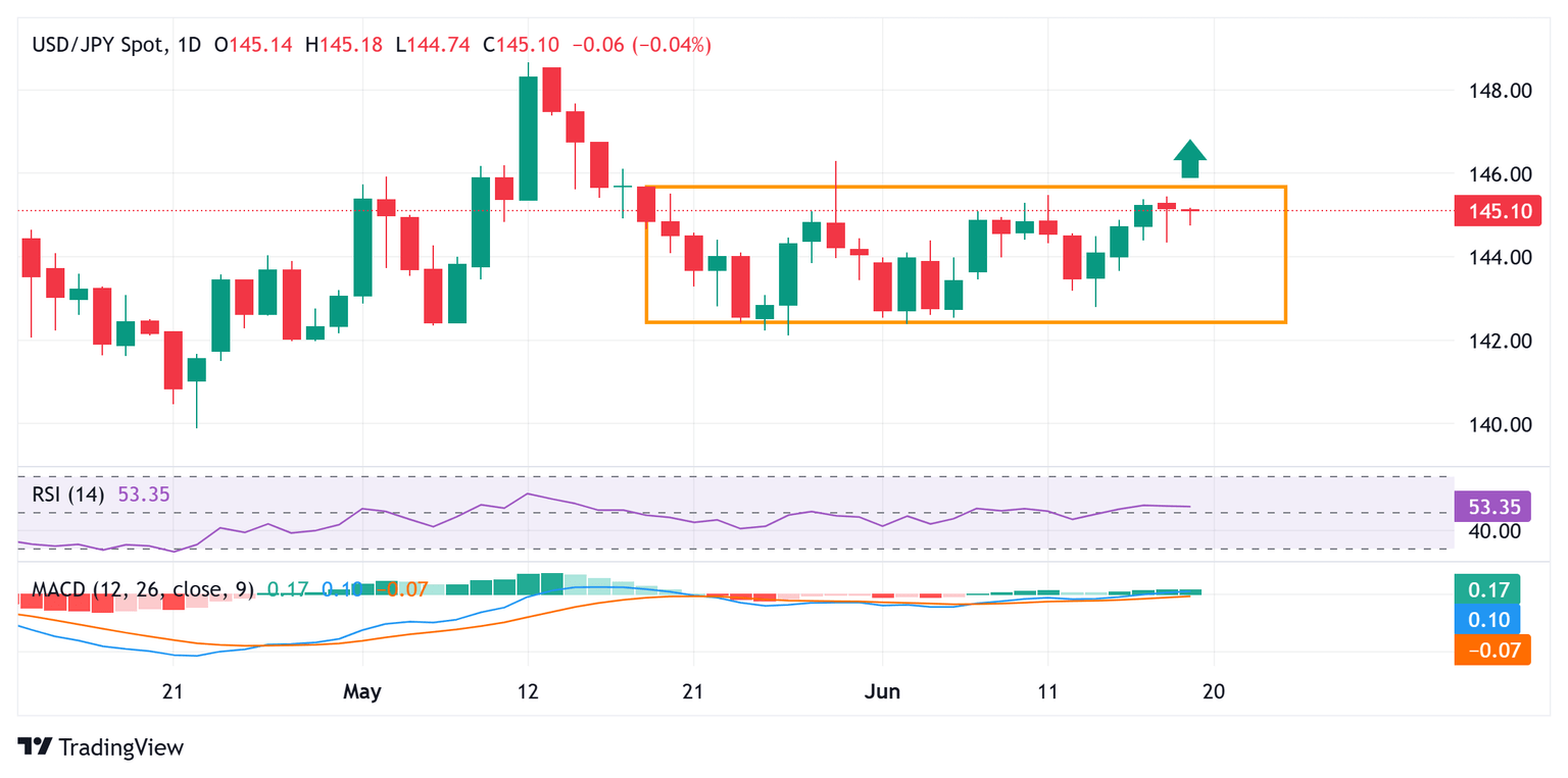 El USD/JPY espera una ruptura a través de la barrera del rango de trading cerca de 145.45 antes del siguiente movimiento al alza