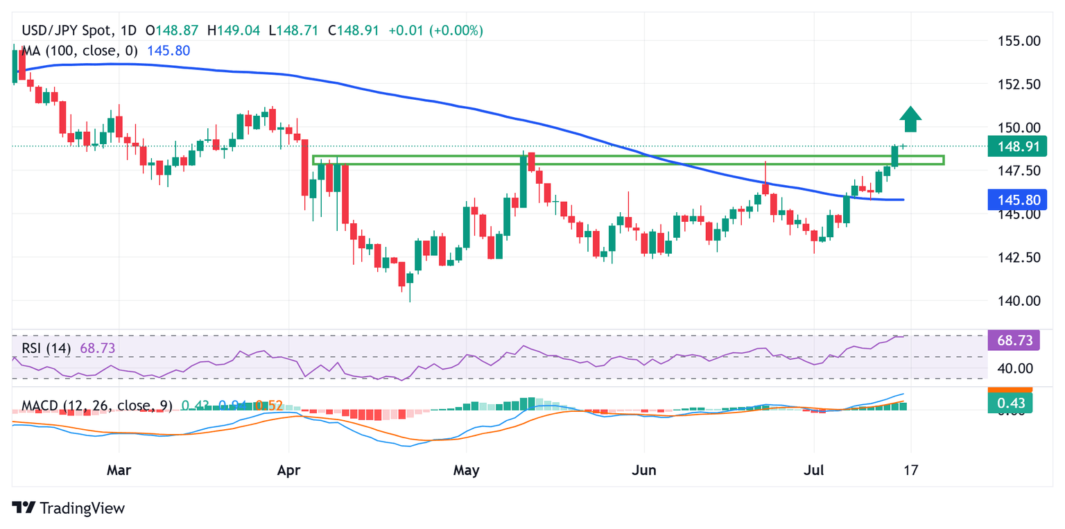 Mientras tanto, los inversores ahora parecen convencidos de que el Banco de Japón (BoJ) renunciará a aumentar las tasas de interés este año en medio de preocupaciones sobre las repercusiones económicas de los aranceles más altos de EE.UU. Además, la incertidumbre política interna antes de las elecciones de la Cámara de Consejeros el 20 de julio podría frenar a los alcistas del JPY a la hora de abrir posiciones agresivas. Además, las expectativas de que la Fed retrasaría el recorte de tasas debido a un ligero aumento en la inflación de EE.UU. favorecen a los alcistas del USD y apoyan las perspectivas de que surjan algunas compras en niveles más bajos en torno al par USD/JPY.