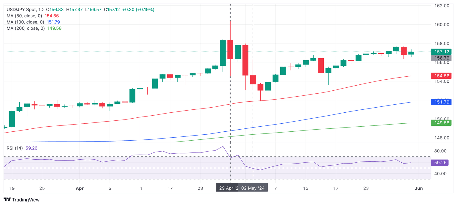 El USD/JPY ha subido constantemente desde el mínimo del 3 de mayo de 151.86 justo después de la segunda intervención del BoJ, demostrando que la intervención solo tuvo un efecto de corta duración.