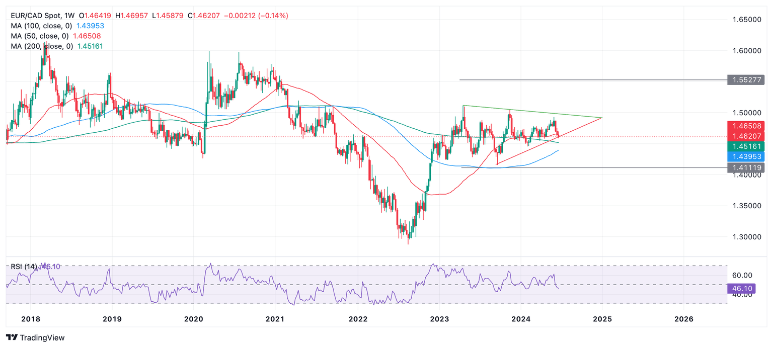 EUR/CAD Análisis del Precio: Probablemente completando un gran triángulo simétrico