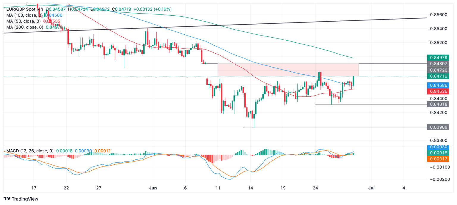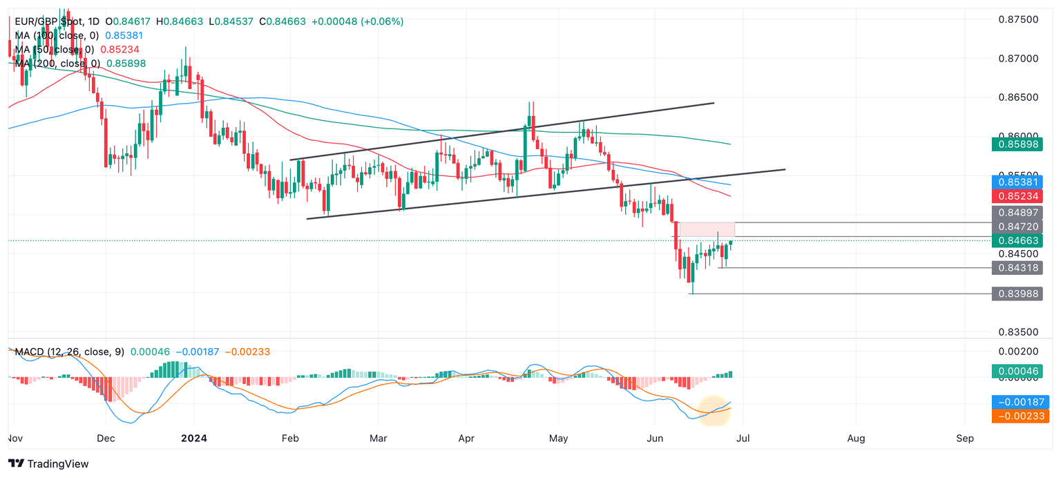 El EUR/GBP ha corregido después de hacer suelo el 14 de junio en los mínimos de 0.8398.