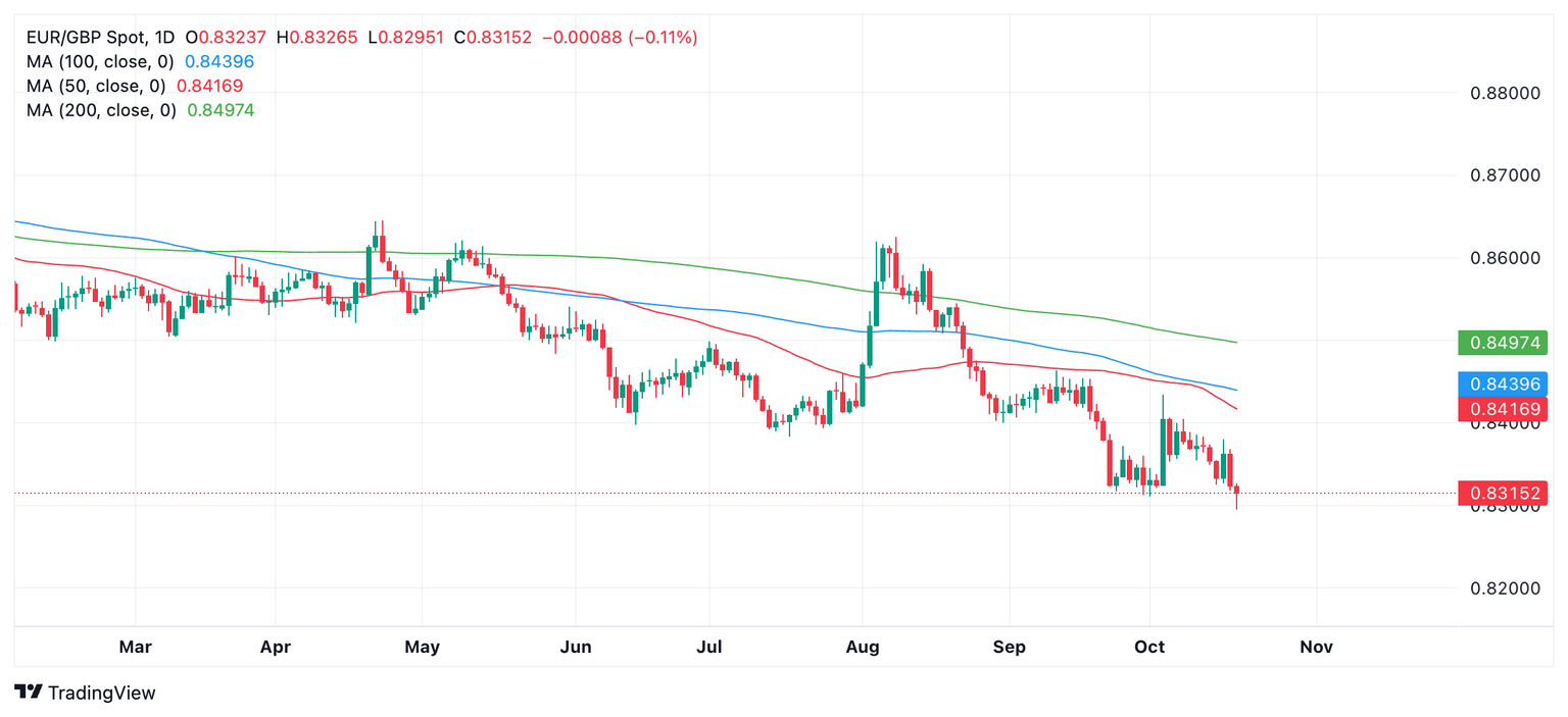 El EUR/GBP cae a nuevos mínimos del año hasta la fecha de 0.8295 el viernes, ya que la Libra esterlina (GBP) se aprecia frente al Euro (EUR) tras la publicación de datos que muestran que los compradores británicos gastaron de manera extravagante en septiembre.