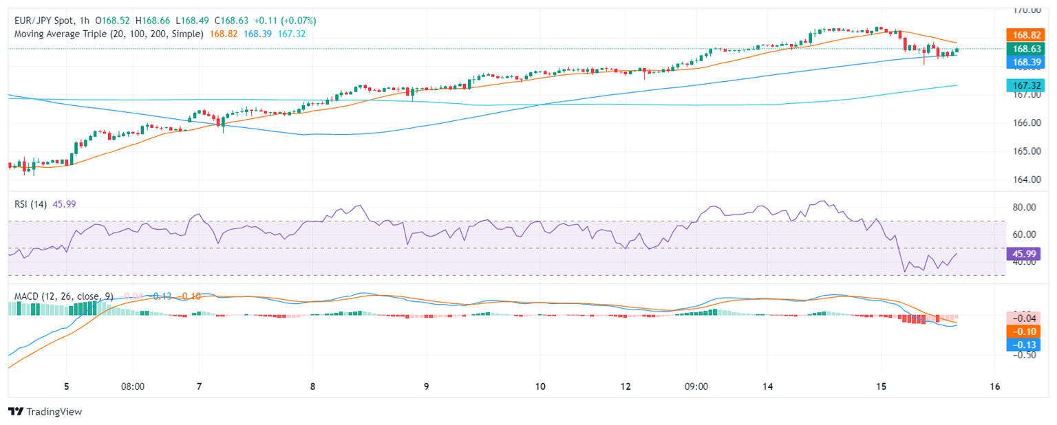 En la sesión del miércoles, el par EUR/JPY mantiene un sólido impulso alcista, a pesar de encontrar presión vendedora y retroceder hasta 168.63. Aunque tocó máximos en torno a 170.00, los inversores se detuvieron temporalmente, lo que podría indicar una consolidación a corto plazo y esta pausa podría allanar el camino para nuevos movimientos al alza.