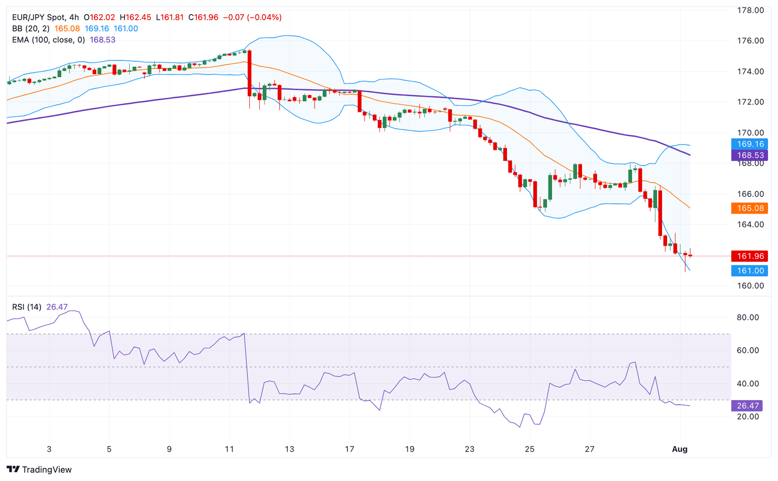 EUR/JPY Análisis del Precio: Permanece bajo presión de venta por debajo de 162,50, se observa condición de sobreventa en el RSI