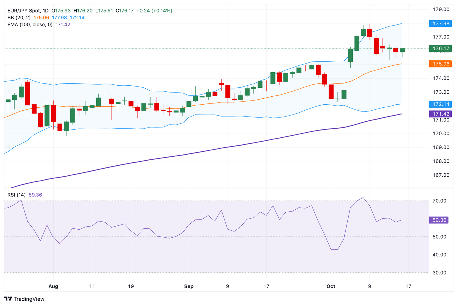 - El EUR/JPY se fortalece alrededor de 176.15 en la sesión europea temprana del jueves.
