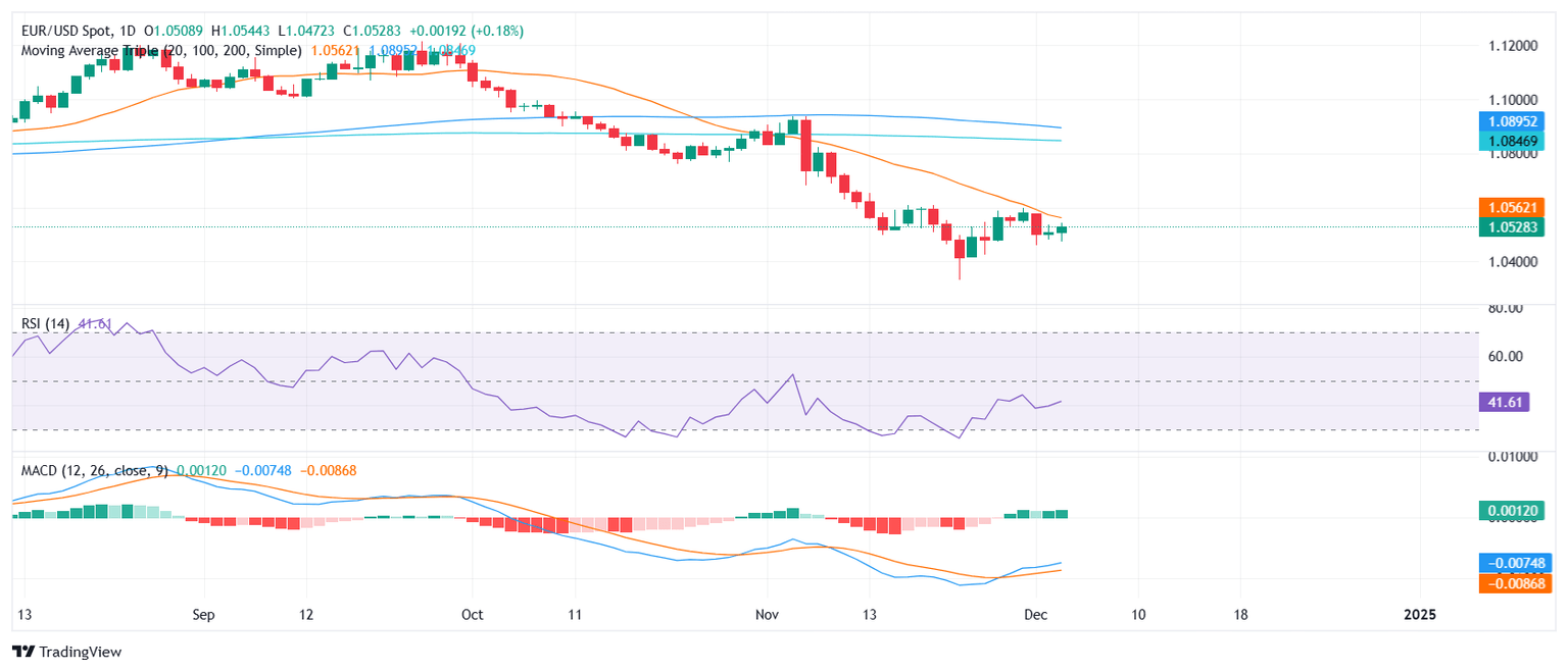 El par EUR/USD encontró soporte alrededor del nivel psicológico de 1.0500 después de abrir la semana con una fuerte caída de más del 1% y acumula una racha de dos días de ganancias. El miércoles, el par vio un modesto rebote, subiendo a 1.0530 a medida que los compradores intervinieron, aunque el panorama técnico sigue siendo bajista.
