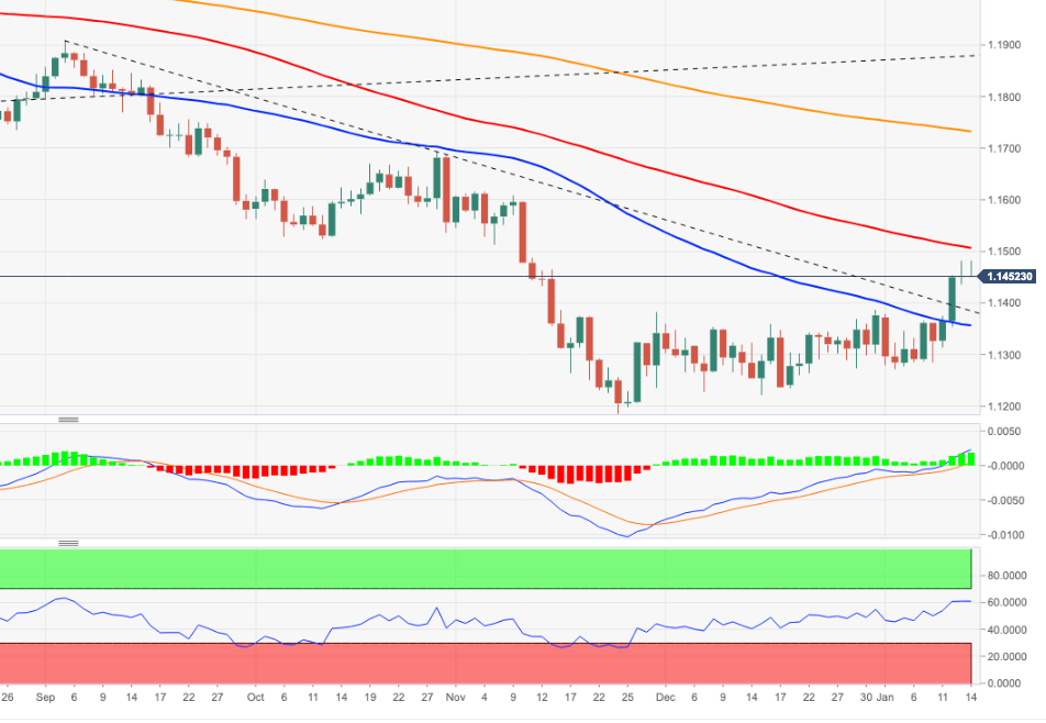- El siguiente objetivo alcista está en la media móvil simple de 100 días justo después de 1.1500.