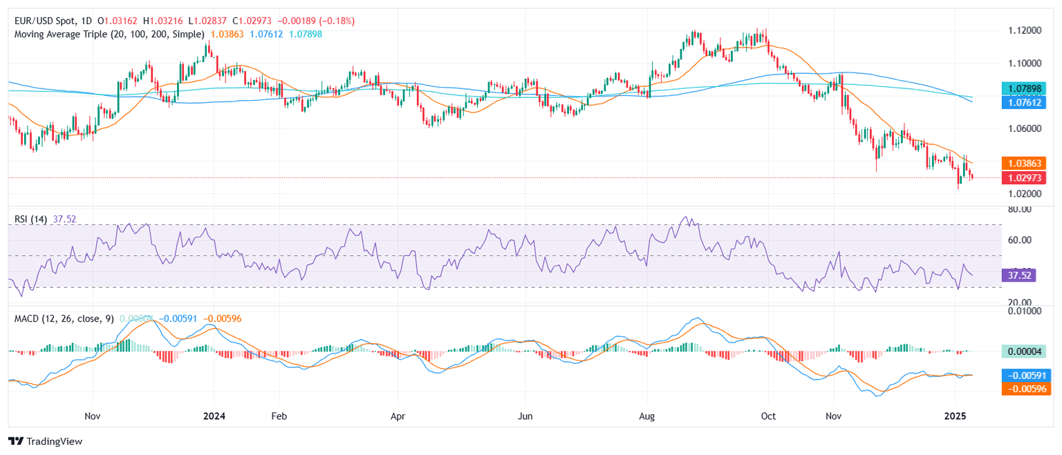 - El EUR/USD cae, asentándose cerca de 1.0305 y marcando tres días consecutivos de pérdidas.